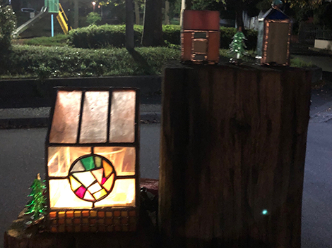 ソーラー電池で、夕暮れになるとほのかに明かりが灯ります。